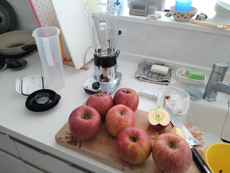 「リンゴ大好き」の拡散しすぎか親戚から大量に頂いた。1日1個では2か月以上かかりそうなので、ジュース化することに。