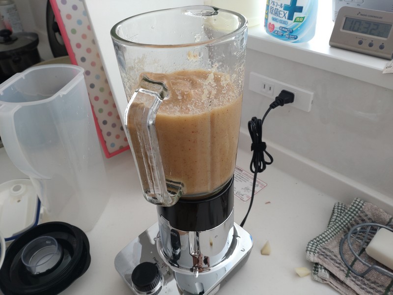 ミキシング → レモン汁投入保管 → ハチミツ加えてヨーグルトソースとして使う