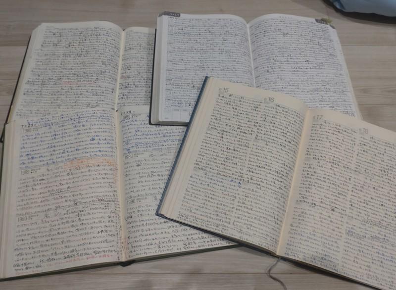 解読困難なため遺品整理で何冊か捨ててしまったが、「超」長期間継続した事実の価値に気づき、残したのが写真の4冊である。この分だけで25年。捨てた分を含めると35年ぐらいか。